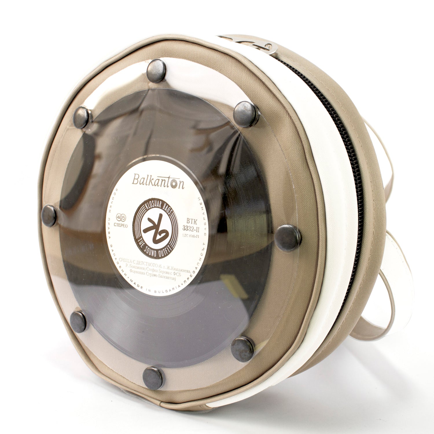 eco leather / cotton fabric inside / vinyl / 7 inch authentic BALKANTON vinyl record / zipper / stainless steel emblem / flowers from holographic foil