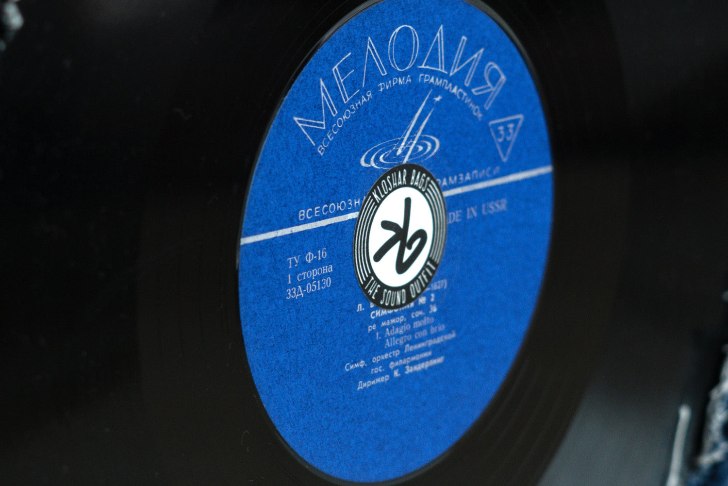 recycled denim fabric - cotton fabric inside - 12 inch vinyl record - belt - zipper
